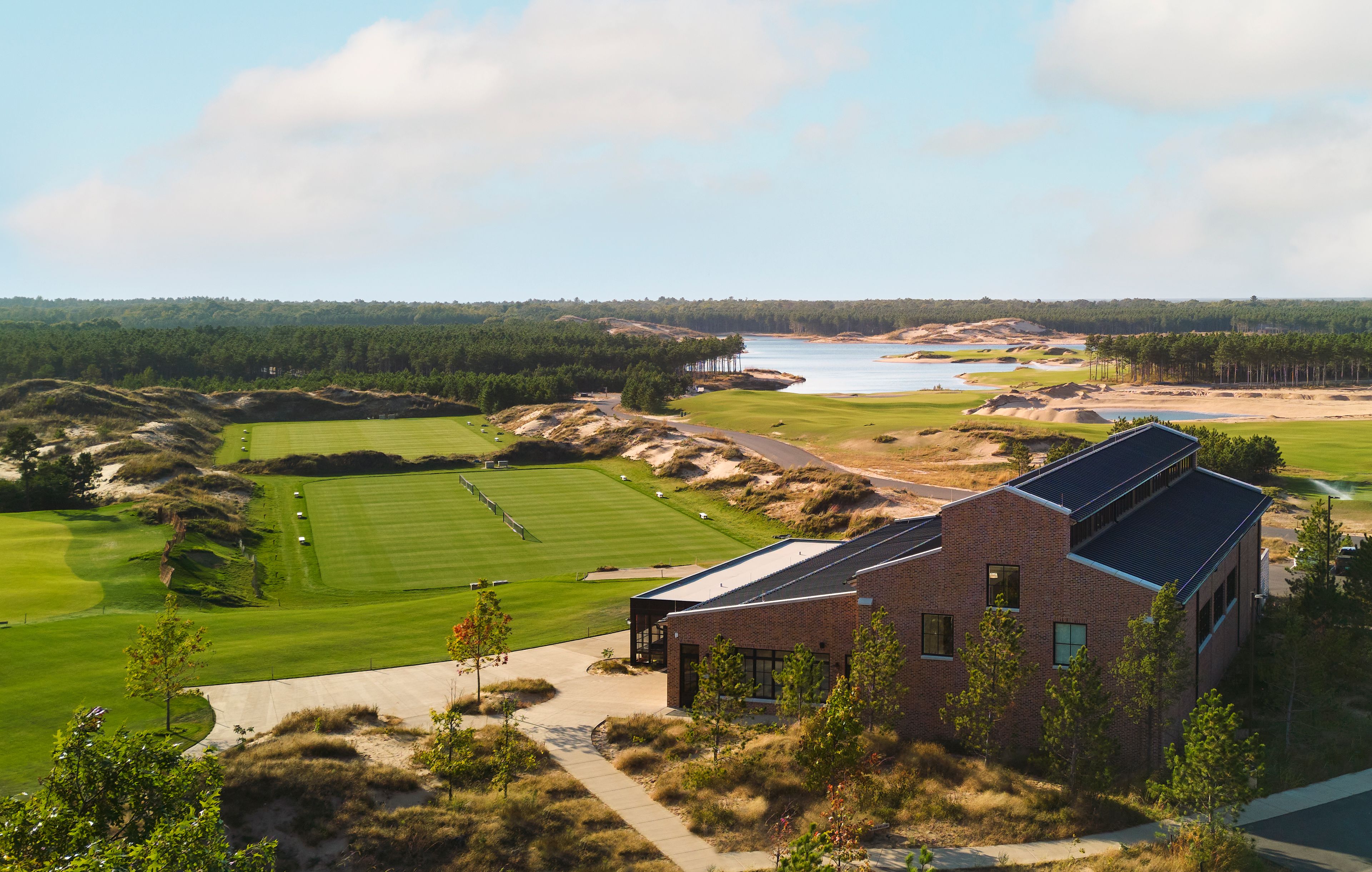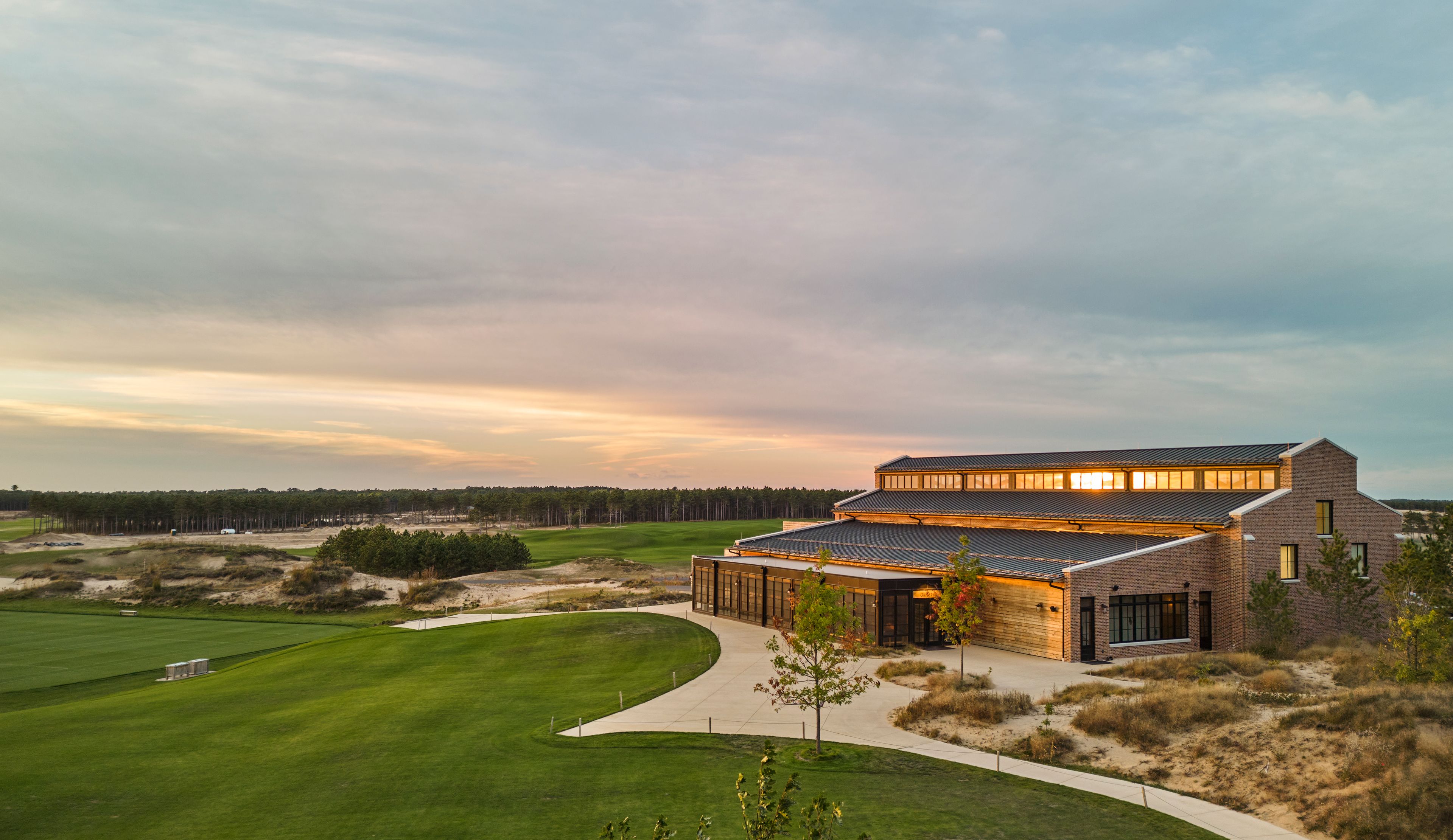 Northworks worked closely with the resort to build the complex building, ensuring that it overlooked the grass courts, complete with elevations and screened porches designed to boast views of play from both the courts and the golf course.